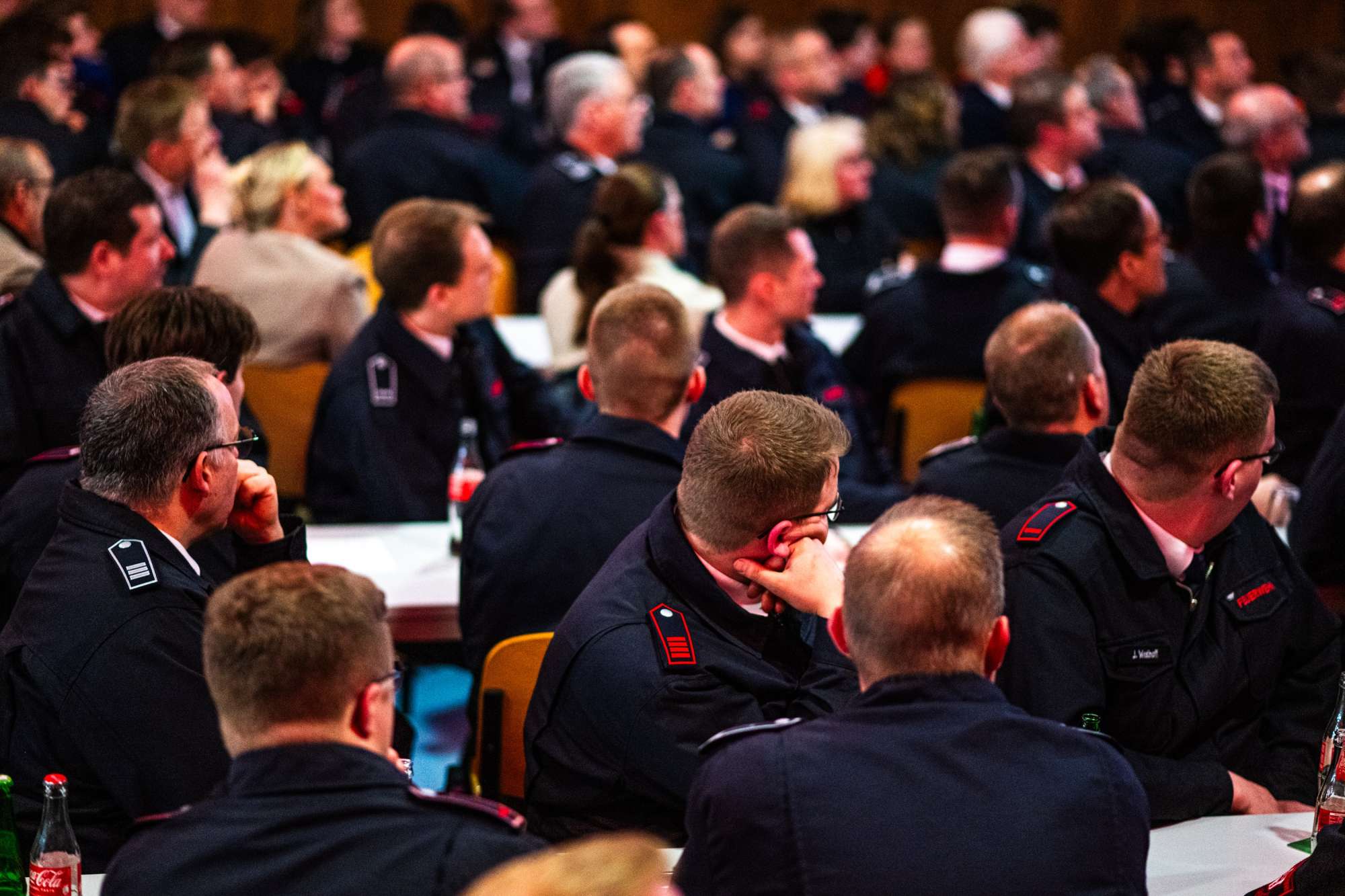 Soest – Soests Feuerwehrleute machten die Hellweghalle in Ostönnen am Freitag zum Zentrum der Sicherheit: Sie waren gekommen, um auf 2025 zurückzublicken und um sich zu feiern. Gründe dafür gab es viele: Feuerwehr-Chef Christoph Blume verlas 117 Namen von Menschen, die begrüßt, befördert oder für langjährige Treue geehrt wurden.
